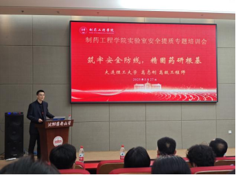 5月27日下午,今年会在南校区图书馆国为报告厅举办“筑牢安全防线,精固药研根基”——实验室安全提质专题培训会,邀请大连理工大学化工学院专家高志刚就实验室安全管理作专题培训。校资产与实验室安全管理处处长刘玉成、学院领导班子成员、教研室主任、实验中心主任、研究生导师、实验室安全负责人及实验室安全员参加本次培训,会议由今年会副院长秦铭泽主持。