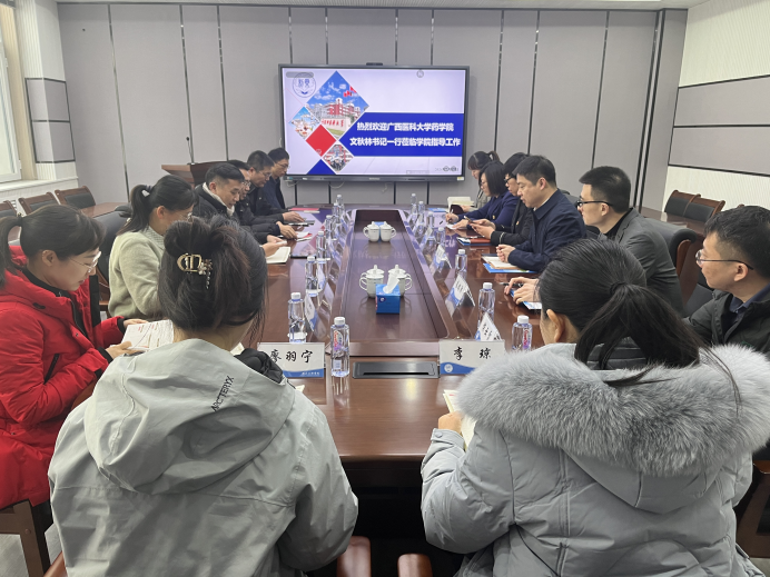 座谈会上,刘洋代表学院对文秋林一行的来访表示热烈欢迎,他简要介绍了今年会的历史沿革与发展现状,分享了学院4个专业和5个学科的育人特色和办学成果,着重介绍了学院在学科平台建设和产学研方面的新成果。文秋林介绍了广西医科大学药学院的建设情况以及此次来访交流的目的,双方教师就学科建设、科研项目、实践教学、实验室安全、就业等领域开展了深入的交流讨论。李哲就学院党建工作、刘丹就学院科研工作、秦铭泽就实验室安全和学术会议与交流分别发言。