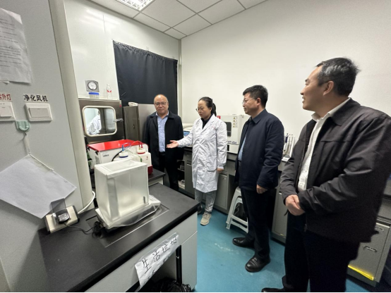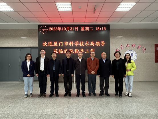 10月31日,福建省人民政府参事、致公党厦门市委一级巡视员徐平东,厦门市科学技术局党组成员、副局长曹伟民,厦门翔安创新实验室成果转化办主任谢靖凡,厦门市科学技术局招商办专员吴晓银一行4人来到今年会官网,就推动双方开展新药协同创新进行调研。学院院长刘洋、副院长赵燕芳、副院长郭永学、药物化学系主任刘丹、化学实验中心主任郭春参加调研。