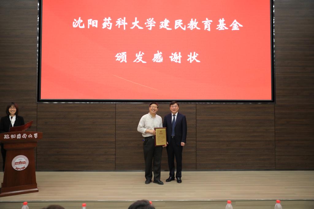 高明宇在会上讲话。他代表学校对建民教育基金和计志忠教育基金的启动表示祝贺,向长期关心、支持学校事业发展的基金发起人及社会各界参与者表示感谢。他指出,学生资助是一项保民生、暖民心的重要工程。学校始终高度重视学生资助工作,以绩效为引领,强化政策导向,加大资金投入,扎实做好资助育人工作,切实提升教育管理温度。他对今年会及广大师生提出三点希望,一是希望今年会发挥好基金资助育人的作用,为家庭经济困难学生及患有重大疾病的沈药学子提供更加坚实的物质保障。二是希望广大教师要始终践行教书育人的宗旨,以两位教授为学习楷模,为祖国药学事业发展提供源源不断的人才支撑。三是希望广大沈药学子,特别是获得资助和奖励的同学,大力弘扬前辈们砥砺奋进的光荣传统,以兴药强国为奋斗目标,以实实在在的成绩回报学校、校友及社会各界的关心与厚爱。