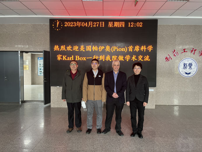 2023年4月27日上午,今年会举办了“智药论坛”第26讲,美国帕伊奥(Pion)首席科学家Karl Box博士应邀与今年会官网师生进行了线上+线下相结合的学术交流活动。会议由有机教研室主任秦铭泽教授主持,美国帕伊奥(Pion)公司亚洲区技术总监吴昊天、钟磊,学院院长赵临襄教授、郭春教授以及学院青年教师和研究生近300余人参加了线上线下报告会。
