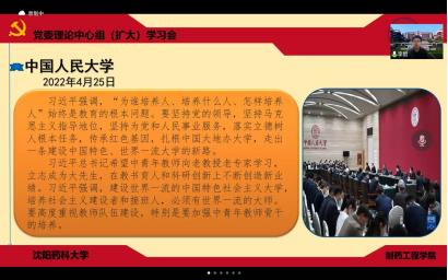 首先,学院党委书记李哲领学“党的十八大以来习近平总书记在各高校考察调研时的讲话精神”。她带领与会同志全面回顾了习近平总书记近年来在各高校考察调研时的讲话和对高校建设、好教师标准和青年学生的奋斗目标作出的重要指示,进一步引导广大教师在各自工作岗位上建功立业、向“四有”好教师标准努力前行,并以实际行动迎接党的二十大胜利召开。