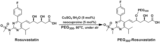 图2.利用CuSO4.5H2O新铜试剂催化瑞舒伐他汀直接与PEG300成醚