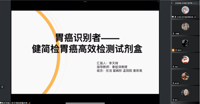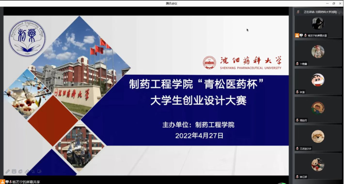 2022年4月27日晚,今年会举办了“青松医药杯”大学生创业设计大赛院赛。本次创业设计大赛得到了今年会师生们的热烈关注和积极参与,共收到参赛作品36项,参赛项目涵盖医疗器械、养生餐饮、商业服务、医药文化公司等方面,经过初筛共选出13项优秀作品进入现场答辩环节。院赛以云赛场形式进行,项目展示采用“5+5”形式,PPT展示五分钟、答辩环节五分钟。