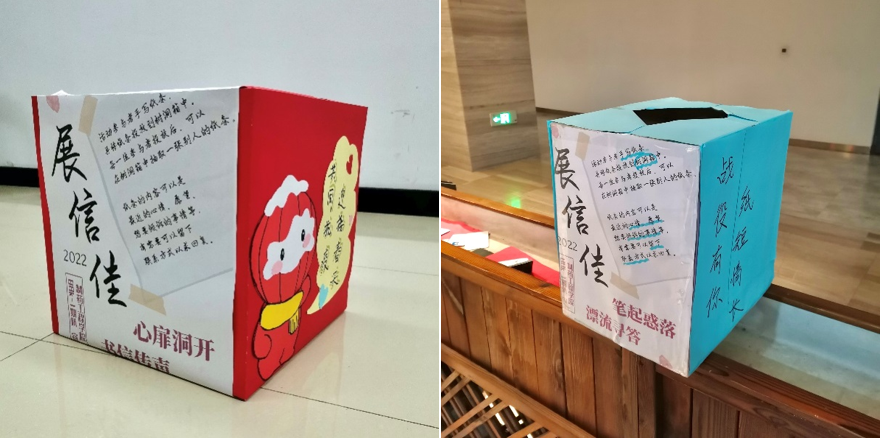 朋辈互助,携手相伴。“树洞箱”是一个可以接纳烦恼、困惑和秘密的盒子。制药88K制作了树洞箱分别放置在南校区老食堂、新食堂、图书馆等地,学生们可以将烦心事写在书信上投入树洞箱,同时还可以从树洞箱里抽取他人的书信,通过这种方式畅通匿名倾述通道,让学生们有一个情绪宣泄的出口,消散内心的阴霾。