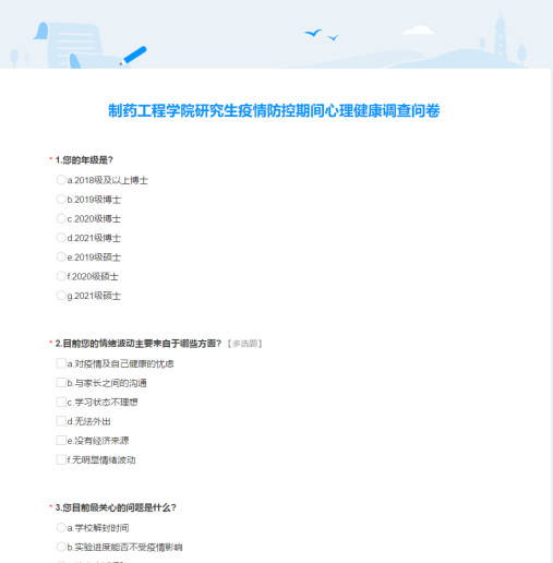 主动作为,倾情守护。发放《今年会研究生疫情防控期间心理健康调查问卷》,深入了解疫情影响下研究生的心理状况和心理需求,为学院更有针对性地开展相关工作提供依据。修订学院《学生突发事件预防及应急处置预案》,进一步健全纵向危机应对联动机制,提高快速反应和应急处理能力。关口前移,完善预警机制,多渠道了解学生思想状况,加强重点对象精准帮扶,为学生健康成长保驾护航。