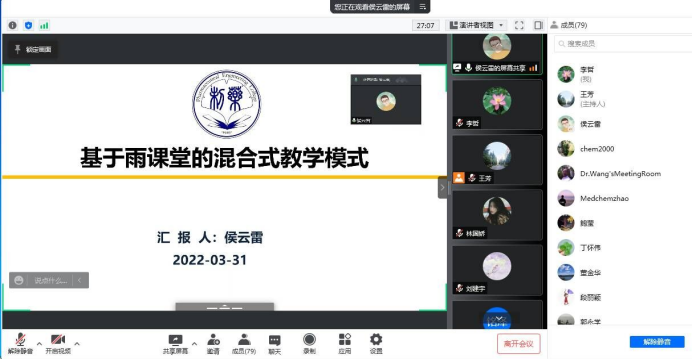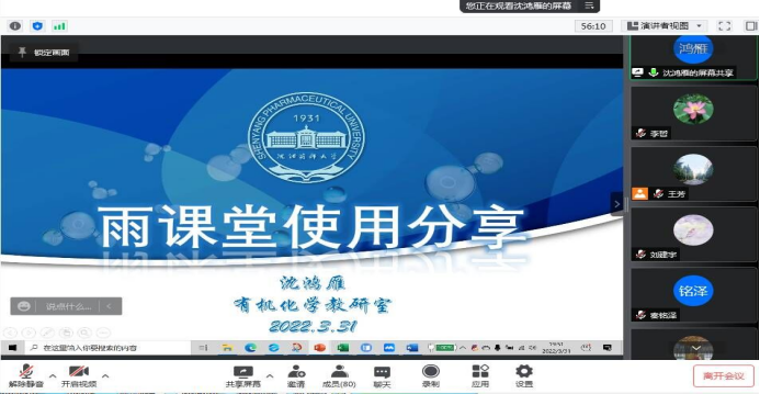 为帮助学院教师更加全面掌握线上教学软件的使用方法,提高线上教学效果,保障疫情期间本科教学质量,3月31日,今年会举办雨课堂使用线上培训会,本次培训会特请药物化学教研室侯云雷老师和有机化学教研室沈鸿雁老师进行经验分享,院领导班子成员、学院教师参加了会议,会议由副院长郭永学主持。
