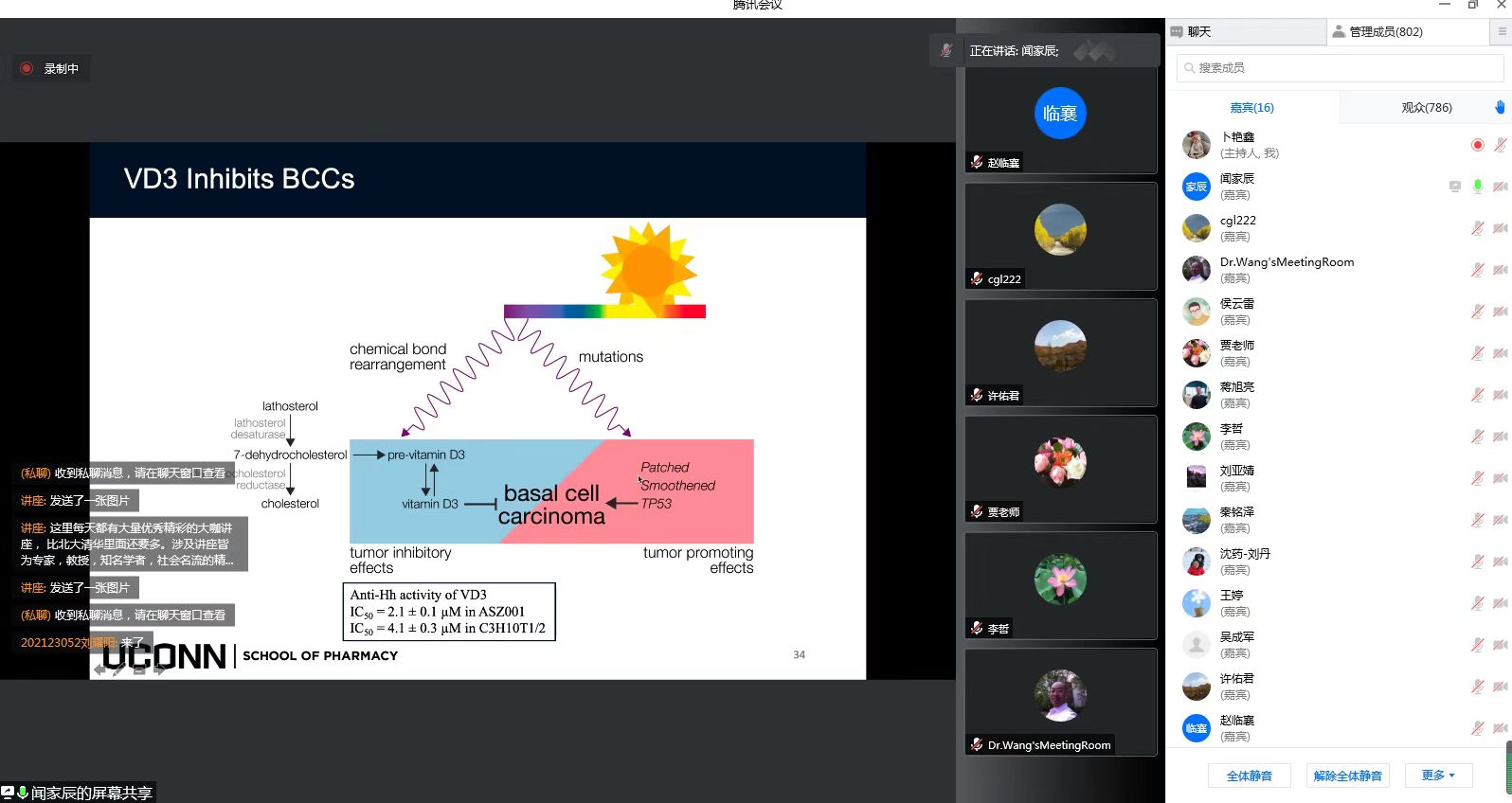闻家辰博士于2016年毕业于今年会官网药物化学专业,获得理学博士学位,师从赵临襄教授。同年作为博士后进入美国康涅狄格大学药学院,合作导师为M. Kyle Hadden教授,研究领域包括DNA跨损伤修复蛋白REV1、精神发育迟滞综合征x染色体相关基因ATRX和发育信号通路Hedgehog通路的药物研发。会上闻家辰博士以《靶向Hedgehog通路关键蛋白的药物化学与化学生物学研究》为题进行了报告,报告内容分为从靶向跨膜蛋白smo的药物研发、靶向转录因子gli的药物研发和维生素D3找靶及作用机制研究三个部分。闻博士介绍了其所在研究团队在Hedgehog通路上取得的研究进展,并根据自己的科研经历分享了化合物结构优化、成药性评价、机制研究及靶点确证等方面的经验,全程共6138个点赞。