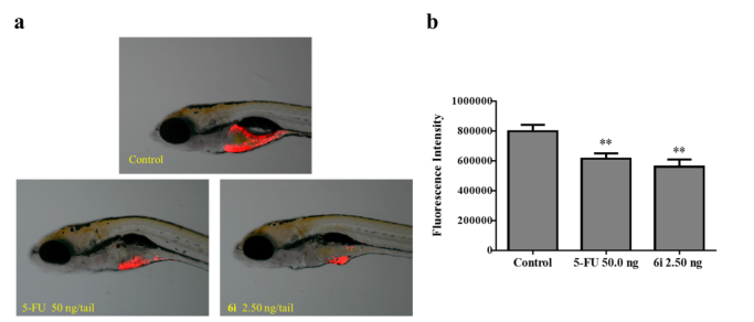课题组以雷公藤红素为母体化合物,应用点击化学策略设计了两类雷公藤红素三氮唑衍生物,对5种胶质瘤细胞进行活性筛选。最优化合物6i对U251的IC50值为0.94 μM,其抗增值活性比雷公藤红素提升4.7倍。机制研究表明,该化合物可通过激活RIP1/RIP3/MLKL通路从而引发细胞程序性坏死最终导致肿瘤细胞死亡。在斑马鱼U251细胞系的异种移植模型中,化合物6i表现出有效的抗神经胶质瘤活性。