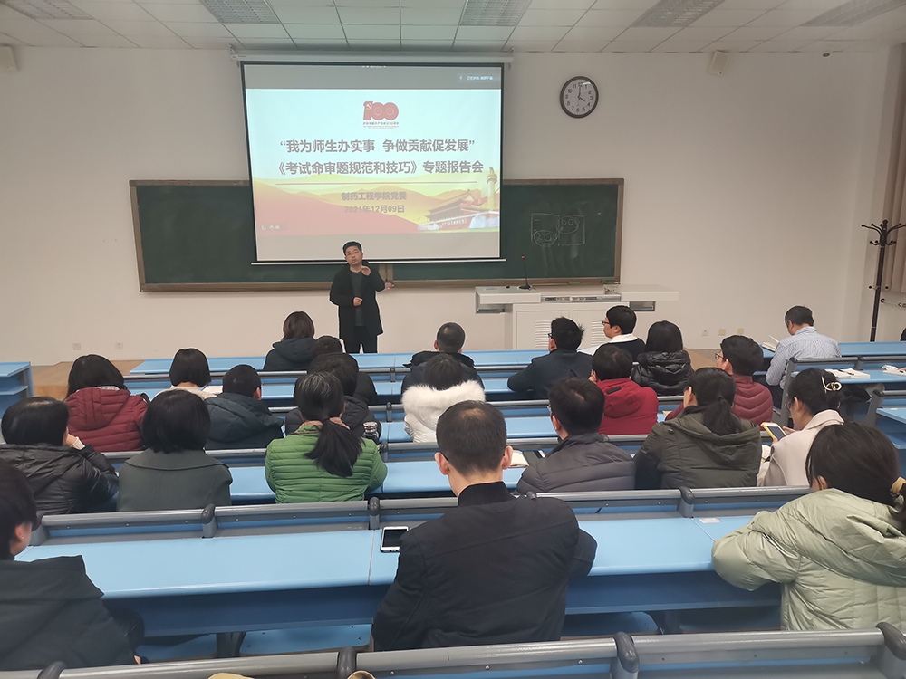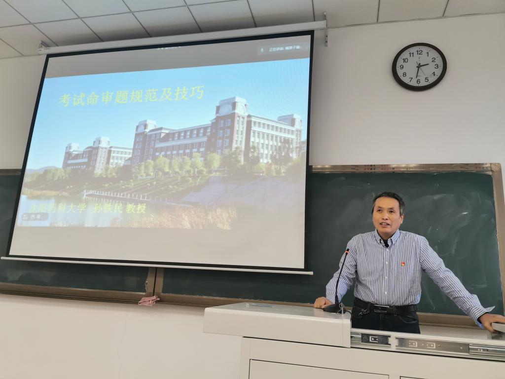 为提高学院教师课程命题规范性和命题质量,今年会于12月9日下午在南校区播馨楼104采取线上、线下相结合的方式召开“我为师生办实事、争做贡献促发展”考试命审题规范和技巧专题报告会,邀请辽宁省教学名师、药物化学教研室孙铁民教授做专题报告。院领导班子成员、学院教师参加了会议,校教学督导办公室主任罗向红正高级研究员、兄弟学院部分教师通过腾讯会议线上参会,报告会由院党委书记李哲主持。