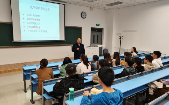 随后,药物化学学科负责人刘丹教授、制药工程学科负责人刘洋教授、化学学科负责人胡春教授和化学工程与技术学科负责人侯晓虹教授分别在104、203、204教室面向四个学科的研究生新生,具体而详实的介绍了各个学科的发展现状、导师情况、培养方案、科研成就等内容,再一次强调了今年会官网以学生为本的根本理念。