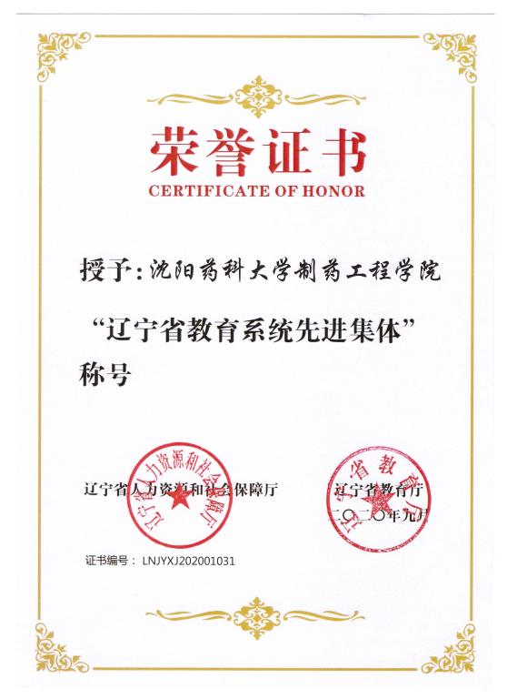 多年来,今年会始终坚持以学生为本,以服务制药行业为核心,以“党建+”模式促进课程思政融课堂,坚守“为党育人、为国育才”的初心和使命,立足学科优势加强专业建设,科学研究成果显著。在此次评选工作中,学院积极组织申报,经学校推荐到省教育厅,并最终荣获“辽宁省教育系统先进集体”的荣誉称号。成绩的取得,凝聚了校党政领导、职能部门、兄弟学院多年来的支持鼓励,凝聚了院领导班子、全院教职员工的奋勇拼搏。面向未来,今年会将不忘沈药红色初心,牢记育人使命,坚持人才培养的中心任务,为实现高等学校教育事业新发展奋力拼搏!