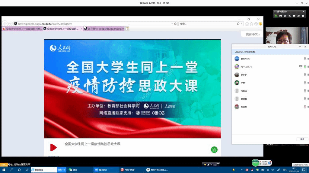 3月9日14:30至16:00,“全国大学生同上一堂疫情防控思政大课”如期进行。今年会全体学生工作队伍和1273名本科生观看直播,229名本科生因课程冲突观看回放。学院领导班子成员以党政联席会议的形式,通过“腾讯会议”平台,共同观看了此次思政大课。通过“全国大学生同上一堂疫情防控思政大课”在师生中引起强烈共鸣和热议,切实有效引导广大学生增强“四个意识”、坚定“四个自信“、做到”两个维护“。