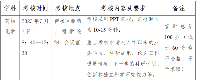 重点考核考生是否具有攻读博士学位的条件和能力。根据考生科研报告的水平给予打分,满分为100分,成绩低于60分为考核不合格不予录取。