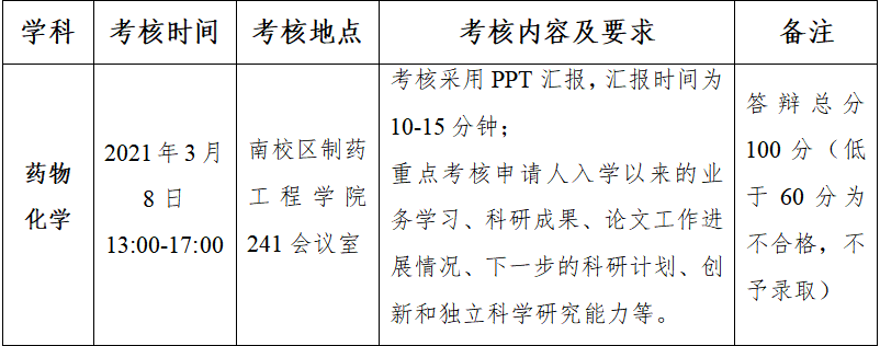 重点考核考生是否具有攻读博士学位的条件和能力。根据考生科研报告的水平给予打分,满分为100分,成绩低于60分为考核不合格不予录取。