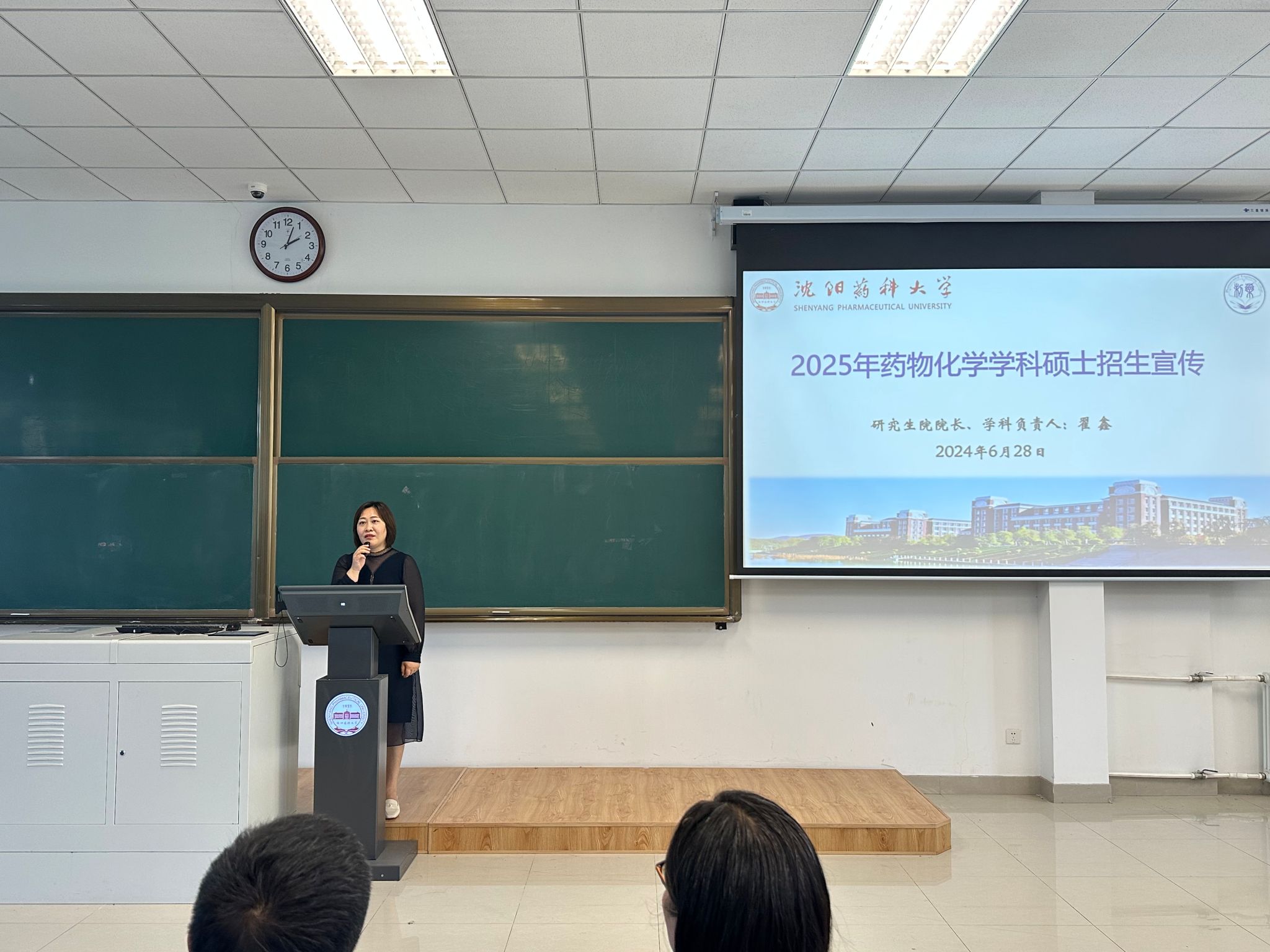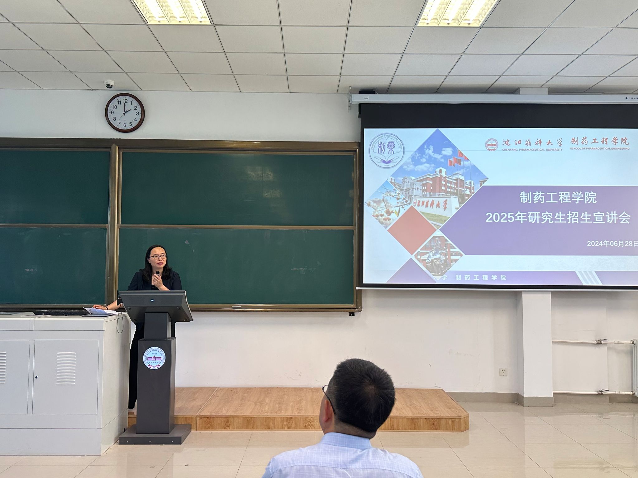 刘洋院长为同学们介绍了制药工程学科。学科以研究药物开发及生产过程中所涉及的一系列制备方法、工艺过程及工程技术为主要任务,是一个化学、药学(中药学)和工程学交叉的工科类专业。他表示制药工程学科与药化学科的师资队伍基本一致,研究方向相似,但研究生的招录比更有优势。随后着重介绍了生物与医药(制药工程)方向专业硕士的招生情况,建议同学们关注绿色制造,投身制药领域,积极申报制药工程方向硕士。同时他介绍了考研科目的变化,就考研复习中应该注意的问题给了同学们暖心提示。鼓励同学们在备考期间端正态度、充分复习,树立自信,并祝愿各位同学备考顺利,取得优异的成绩。