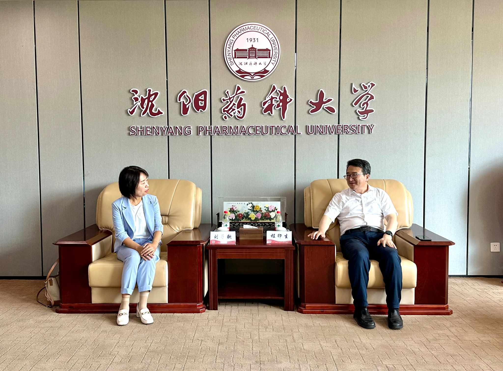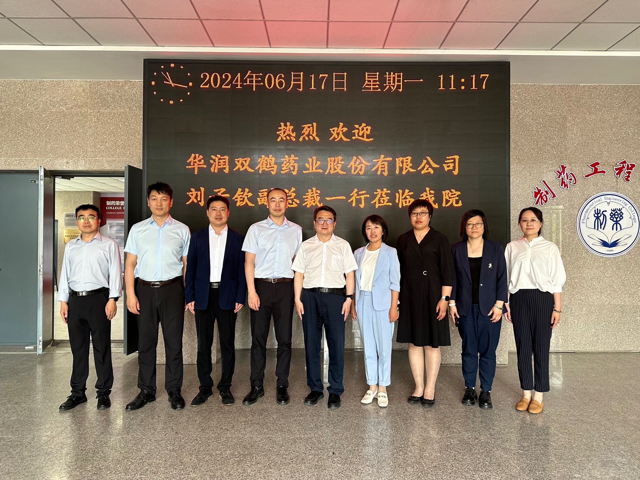 程卯生亲切会见了刘子钦一行,并代表学校在揭牌仪式上致辞。他对刘子钦一行到访学校推动合作表示热烈欢迎,对华润双鹤长期以来给予学校的信任与支持表示衷心感谢。他简要回顾了学校与华润双鹤的历史渊源以及双方多年来在人才培养、科学研究和基地建设等方面的合作情况,高度赞誉双鹤85年始终坚守初心,为中国革命胜利和医药事业高质量发展作出的重要贡献,并就校企未来的合作关键点提出了具体建议。他表示,沈药和双鹤有着相同的红色基因,是几十年的“亲密战友”,联合实验室的成立是校企产学研合作的又一次新突破,为双方进一步深化多领域交流搭建了新的桥梁和平台。他希望,校企以此次合作为契机,全力推进以企业为主导的产学研深度融合,在前沿科技创新、高层次人才培育和高端学术会议承办等多领域拓展合作方向、结出丰硕成果,为企业创新发展和生物医药产业建设提供人才支撑和智力支持。