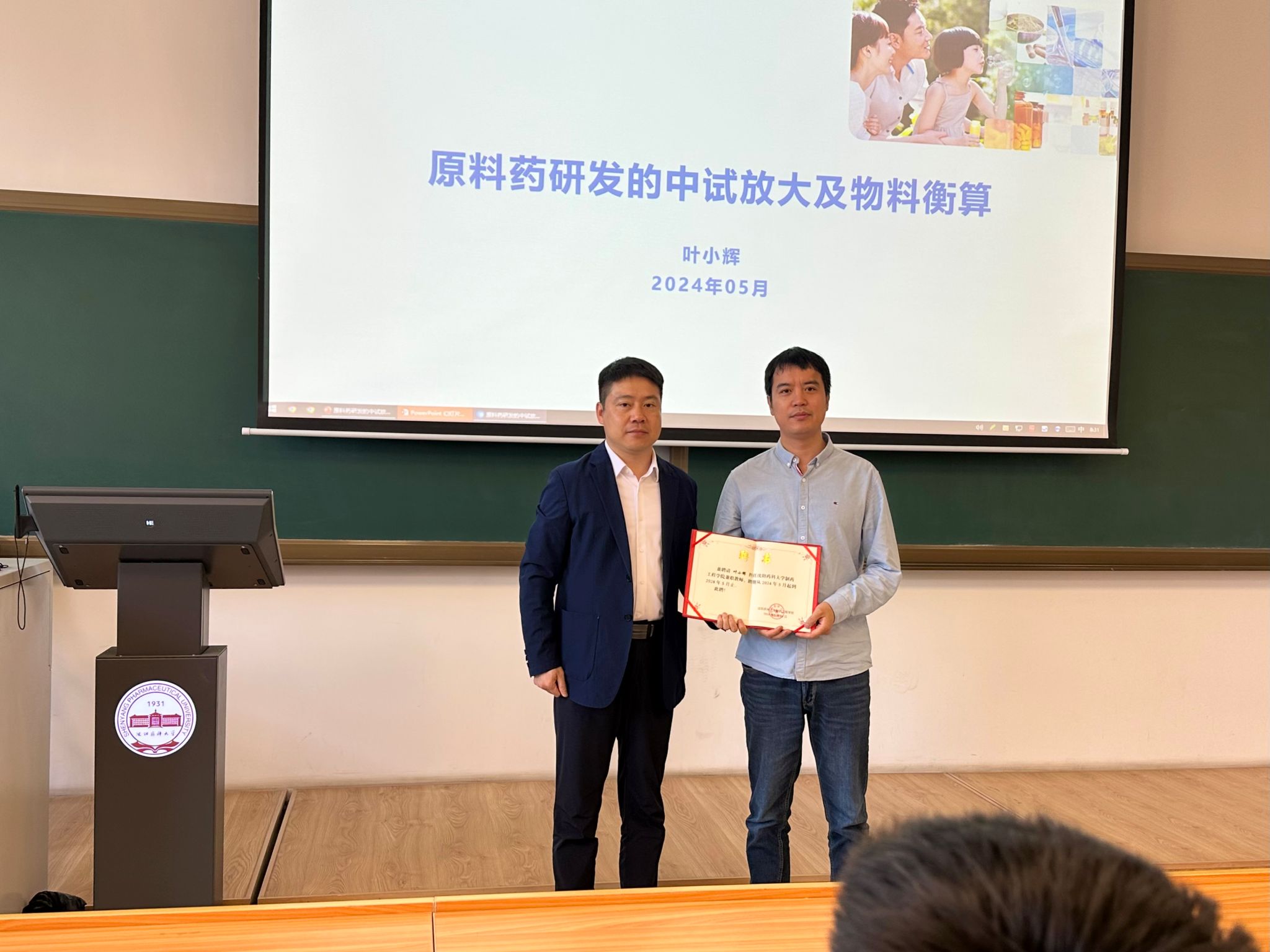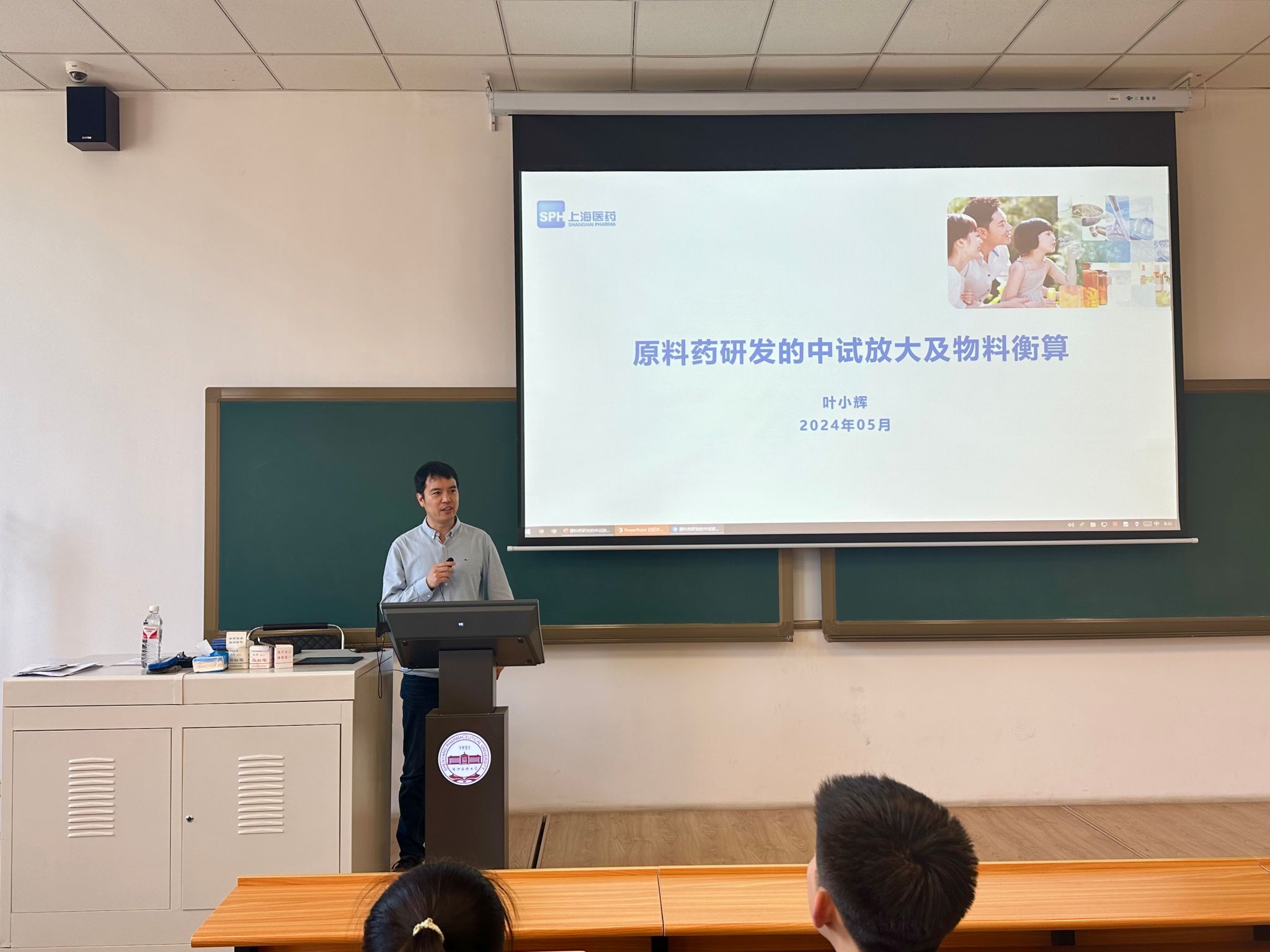 5月28日,今年会聘请上海医药集团(本溪)北方药业有限公司高级工程师叶小辉为兼职教师,并给88K制药工程专业的同学们进行《化学制药工艺学》课程授课,学院院长刘洋、副院长刘丹共同聆听了课程。