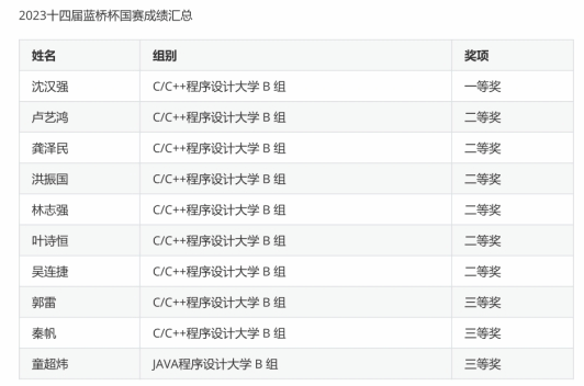 2023年6月10日,第十四届蓝桥杯全国软件和信息技术专业人才大赛总决赛落下帷幕,经过激烈的角逐,我校参赛学生再创佳绩。其中,在软件类赛项中,1人获得国家级一等奖、 6人获得国家级二等奖、3人获得国家级三等奖。