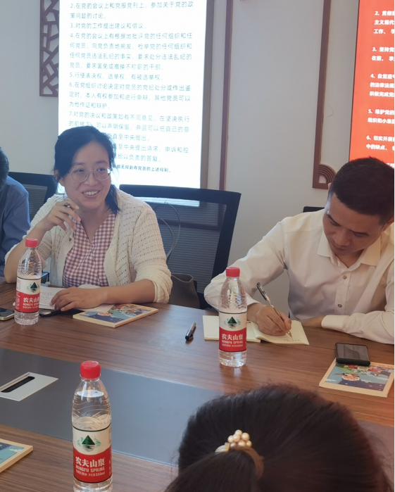与会人员依次在会上进行发言,结合自身工作分别从党支部建设思路、特色品牌创建以及下一步工作打算进行交流分享。