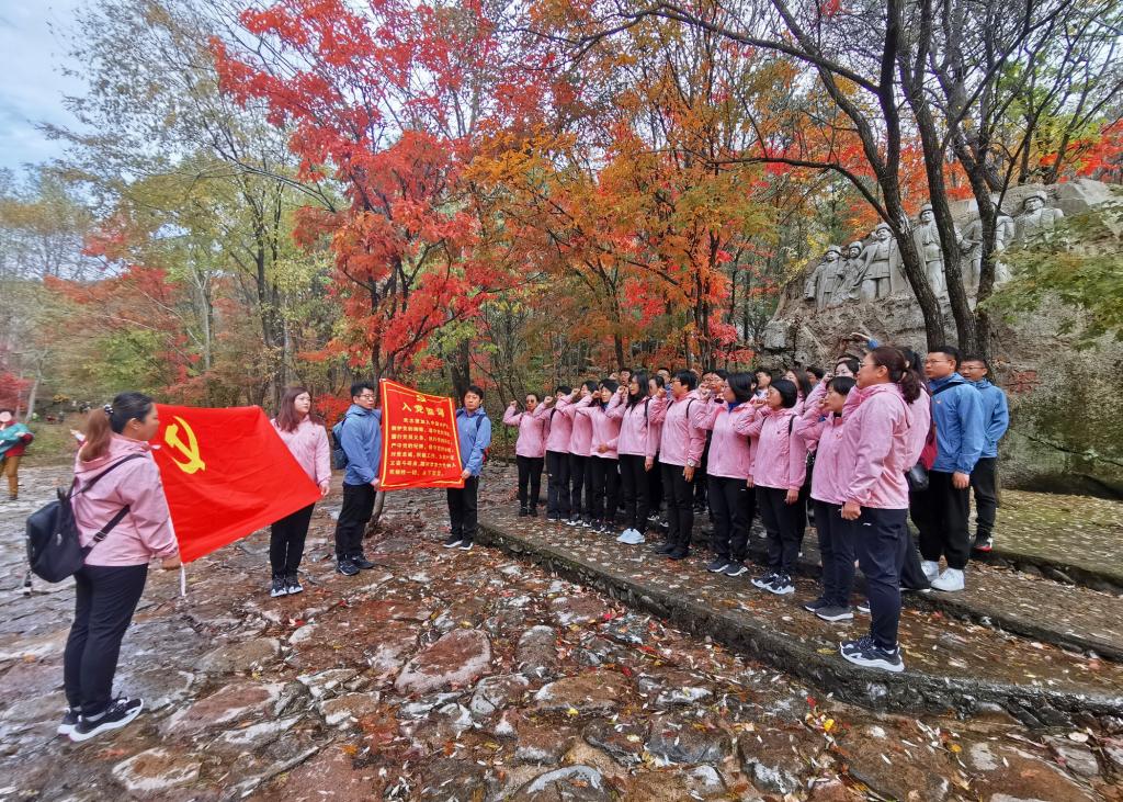 随后,在老边沟战斗遗址纪念碑前,由学院团委书记、院党委兼职组织员史琳琳领誓,学院党员教师重温了入党誓词。党员教师们面对鲜红的党旗,佩戴党徽,举起右拳,庄严宣誓。在洪亮的宣誓声中,大家更加坚定了全心全意为民、忠贞不渝为党的理想信念。