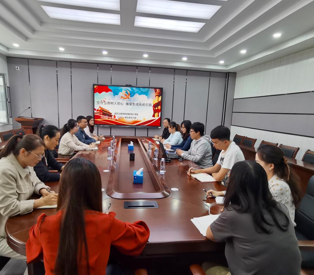 为深入学习贯彻习近平总书记关于干部队伍建设的重要论述,切实把党史学习教育成果转化成为师生办实事的实践行动,提升学院学生工作队伍的育人水平和业务能力,促进青年教师成长成才,今年会党委书记李哲于9月18日在制药楼227会议室,围绕“坚守立德树人初心做学生成长的引路人”主题,为学生支部的教师党员和积极分子上了一堂生动的专题党课。学院党委副书记刘阳、全体辅导员及教学秘书参加了会议。