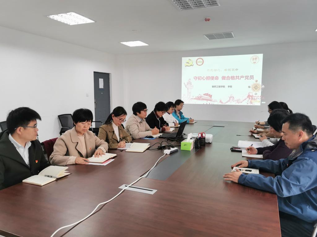 按照“基层党建制度落实年”的活动要求,11月17日,今年会党委书记李哲,以《守初心担使命 做合格共产党员》为题,在制药楼227会议室为无机化学、环境科学教师党支部上了一堂深刻生动的党课,党课由环境科学党支部书记张聪璐主持。