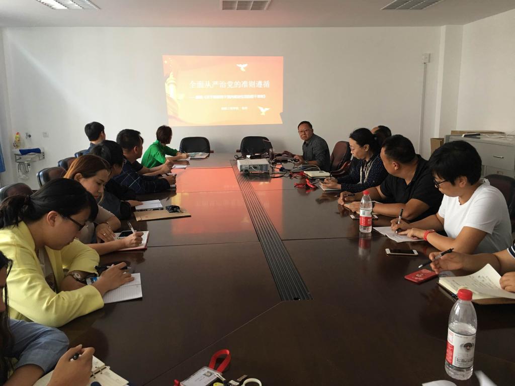 首先,张伟书记以PPT的形式做中心发言,张伟书记以“全面从严治党的准则遵循”为题,从“党内政治生活的实践与探索是《准则》的源泉、严肃党内政治生活是解决党内存在问题的重要途径、党内政治生活必须以党章为根本遵循、坚定理想信念是加强和规范党内政治生活的首要任务、坚持党的基本路线是加强和规范党内政治生活的根本保证、加强和规范党内政治生活的重要目的是坚决维护党中央权威、严明党的政治纪律是加强和规范党内政治生活的重要内容、保持党同人民群众的血肉联系是加强和规范党内政治生活的根本要求、坚持民主集中制原则是加强和规范党内政治生活的制度保障等九方面详细解读了《关于新形势下党内政治生活的若干准则》。接下来,张伟书记结合今年会官网党建工作的实际情况,逐条解读了辽委办发〔2017〕15号-《关于严格党的组织生活制度的意见》的文件精神。